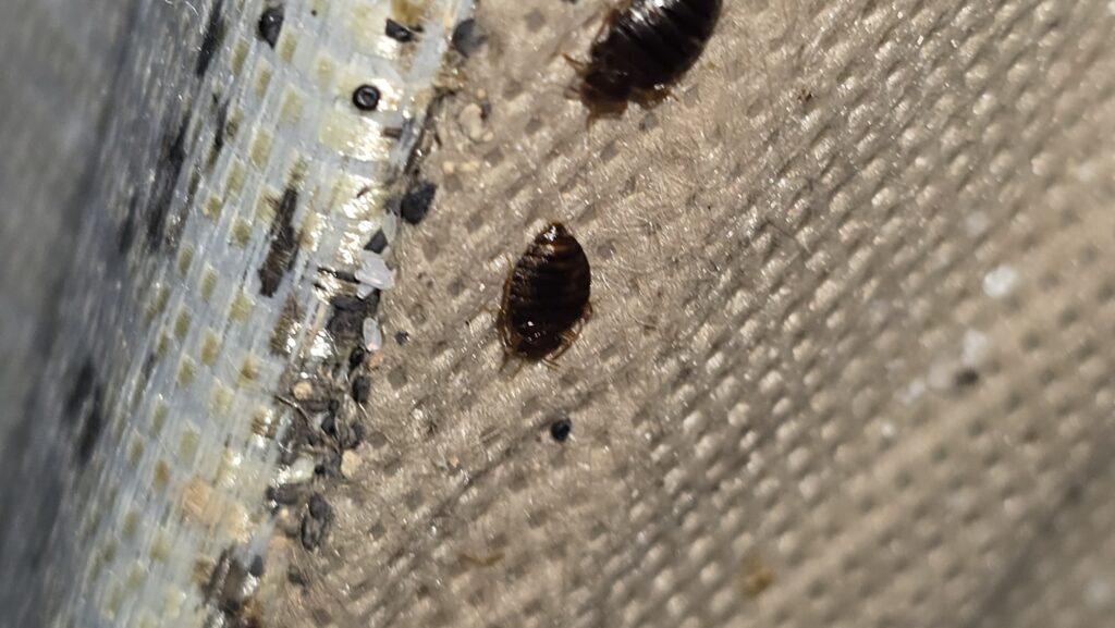 - Live bedbugs or eggs in mattress seams, headboards, or skirting boards